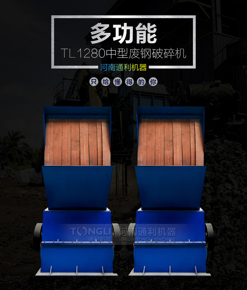 河南通利1280破碎机由主机一台,生产线一条,磁设备一台,输送机一台,电机一台组成,厂家可为您提供系列化的金属破碎机和整个破碎工厂的工艺装配配置。用于破碎轻薄料如汽车外壳混合废金属,包括金属打包块的破碎,机器通过不断、化以及经验的积累,掌握了设计和制造破碎机的技术诀窍,从而设备长期可靠地低成本运行。